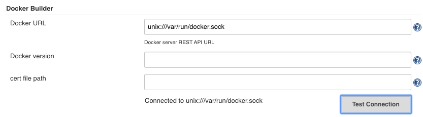 /var/run/docker.sock 여기 설정이 중요하다. 도커 컨테이너 안에 있는 젠킨스에 tcp로 접속을 해야하는데